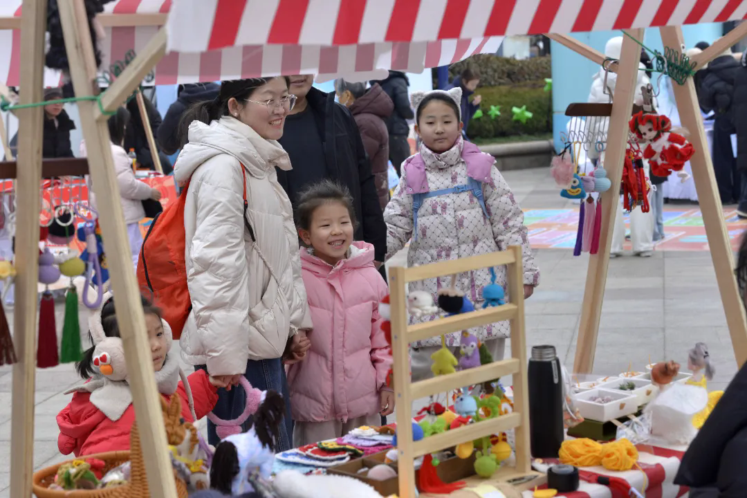 鸥鸣阵阵,市集熙攘。走进“鸥伴团圆”市集,腊月的海风有了年的甜香,那是为所有人铺开的一席流动的团圆宴。现场30个特色摊位热闹非凡。非遗公益推介区里,掐丝珐琅、扎染、钩编、布艺缝制等传统技艺在指尖流转。市民游客争相领取新春福礼,把福字春联、中药香珠、宋锦首饰等礼品与美好祝福带回家。