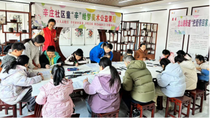 通过开办“‘辛’灵手巧”共富工坊、定期组织义卖、创意开展“泡沫之夏”亲子泼水节等项目,社区不仅帮助辖区宝妈实现“微创业”,更增强了基金的自我“造血”能力。同时,社区深度链接“红色合伙人”资源,以“公益换公益”模式,引入美术机构开设童“辛”绘梦公益课;与枣庄学院、红旗小学等共建单位合作,开展核科普、红色文化等活动,形成了资源共享、优势互补的良性循环。